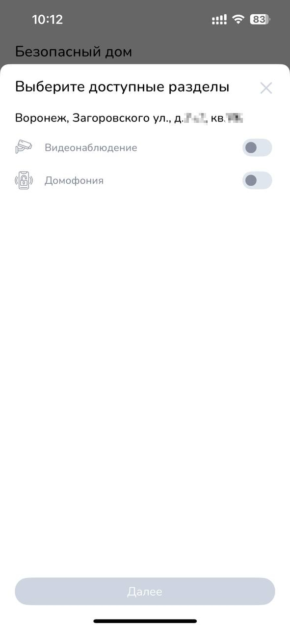 Выберите разделы, которые хотите предоставить. Нажмите кнопку Далее.